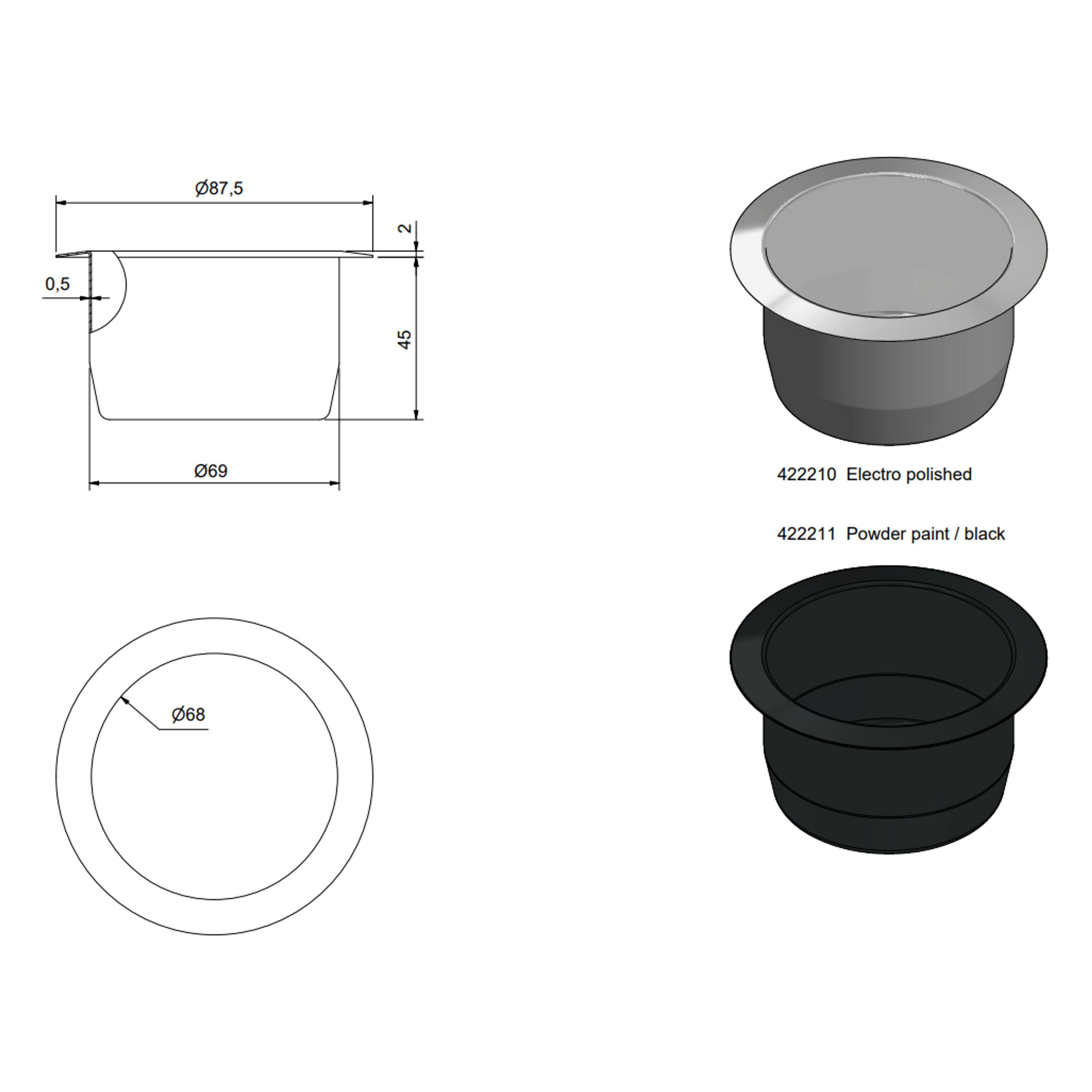 Høyde 48mm Innv. Ø 69mm.