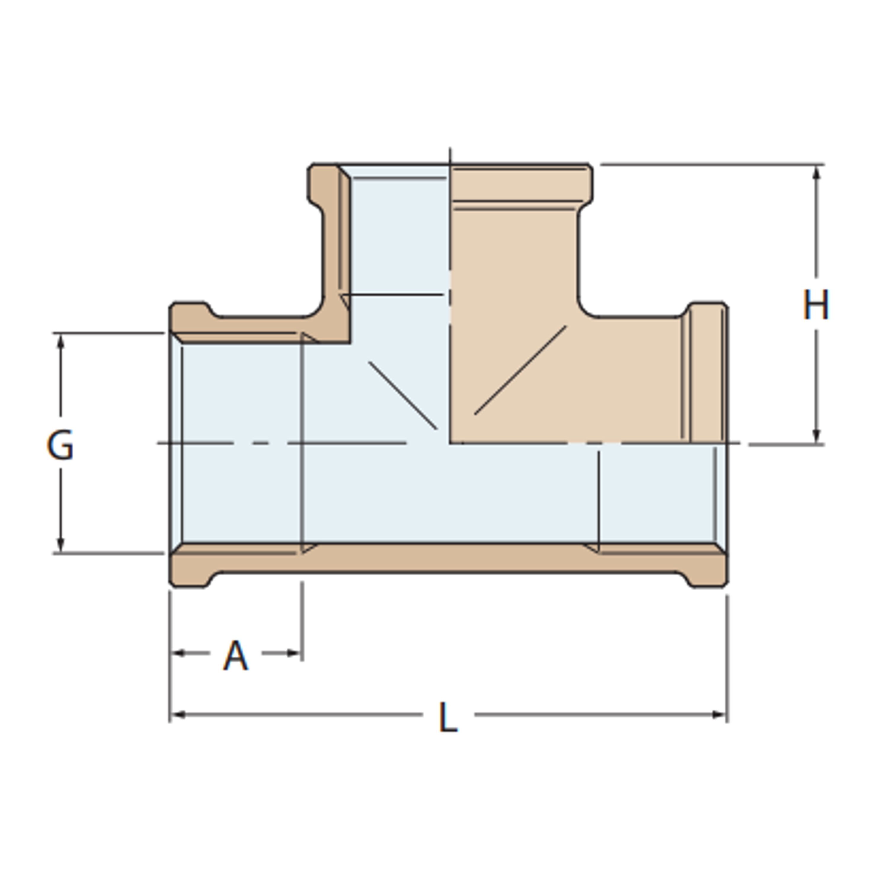 Kraftig rør T-kobling i massivt bronse med innvendig gjenge, produsert av Guidi.