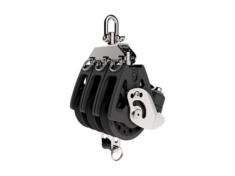 | Synkroniseringsblokk 72 Type trippel Monteringsbøyle Med hundehale og låsing Diameter på trinse 72 mm Maks. tau 10/12 mm Maks. arbeidsbelastning 1100 kg (180 kg låst) Vekt 820 g |