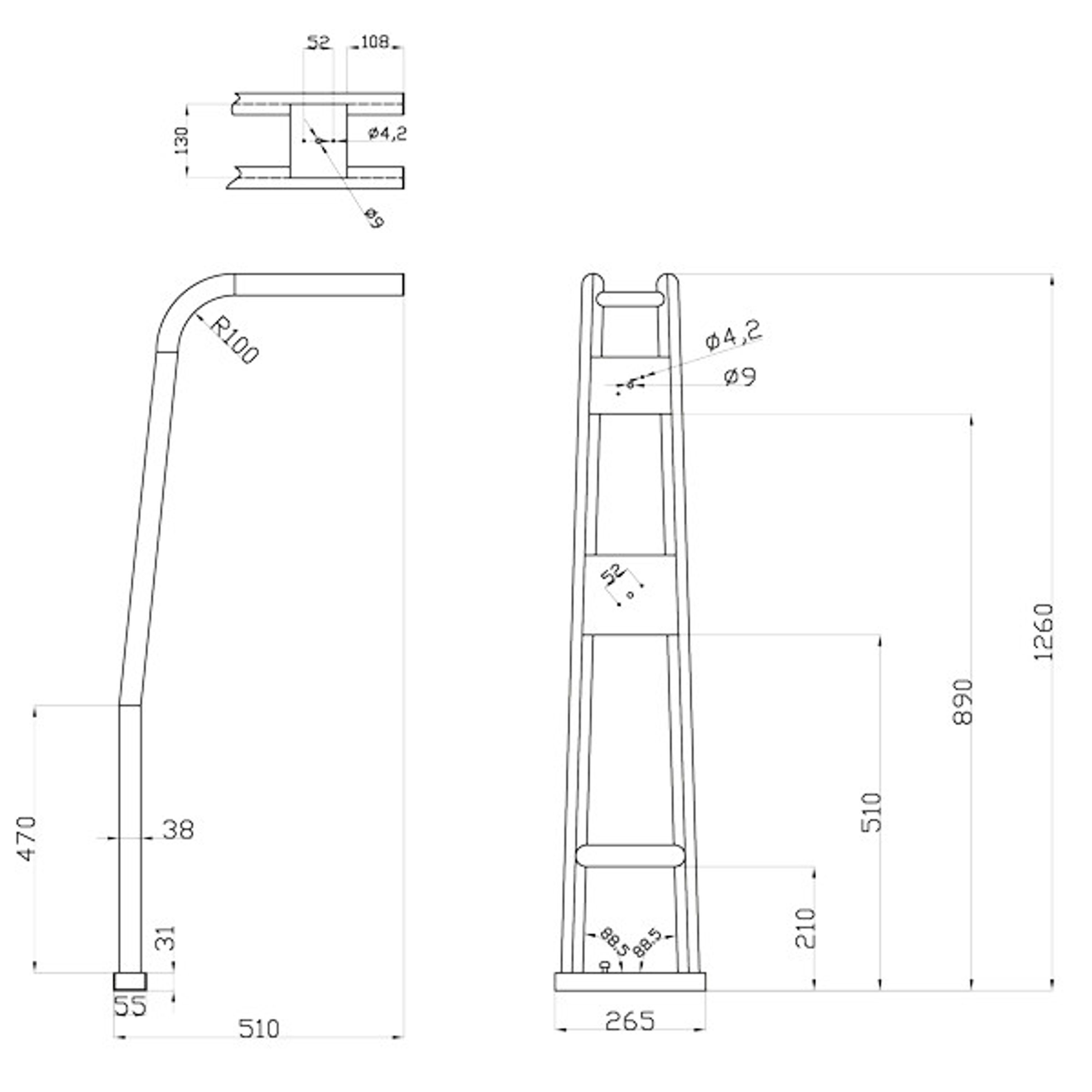 Targabøyle til Jolle 90° Vinkel Ø40/32 mm B:1,5-2,25 m