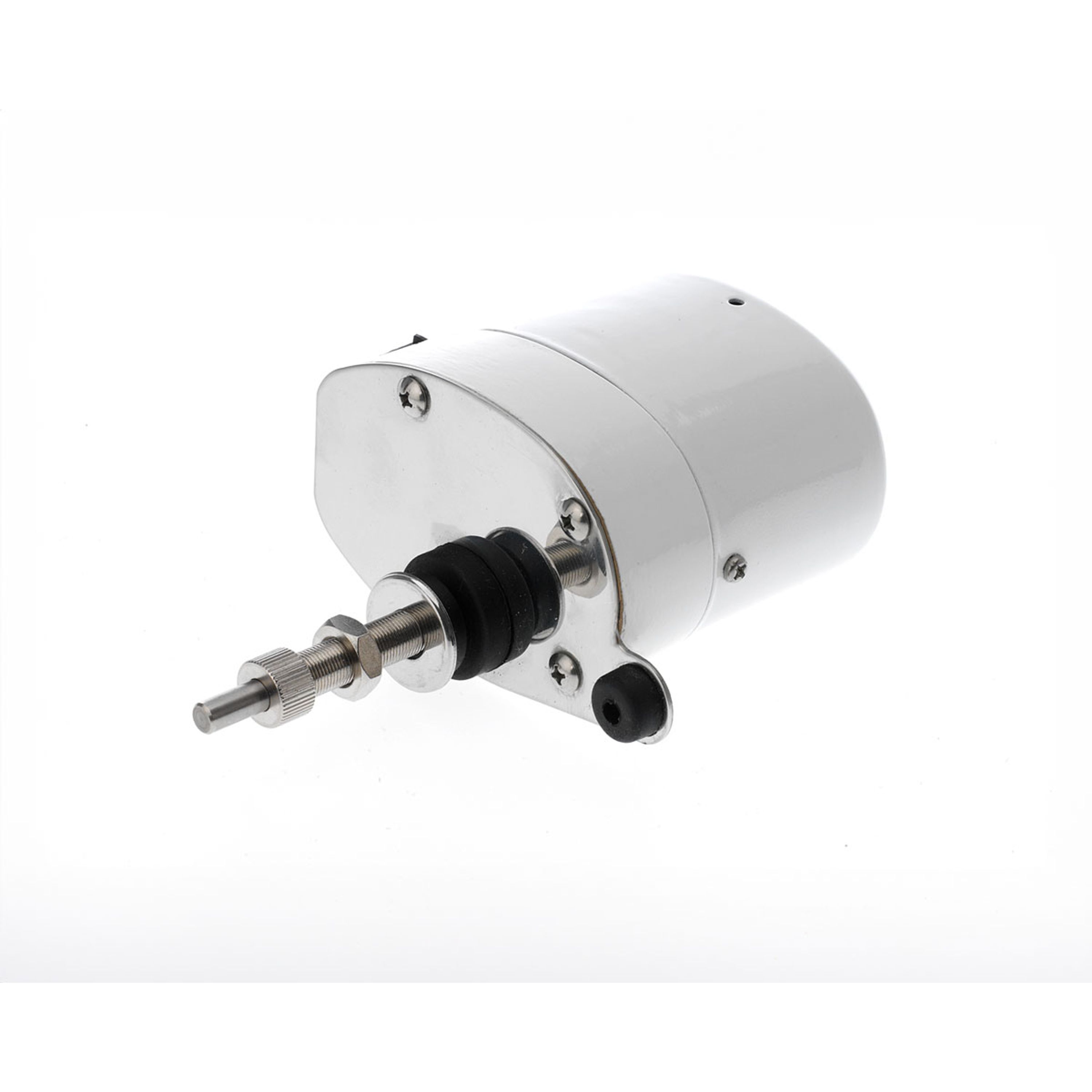 Vinduspussermotoren har hvit pulverlakkert aluminiumshus. Motoraksel og monteringsplate i rustfritt stål (SIS2333).